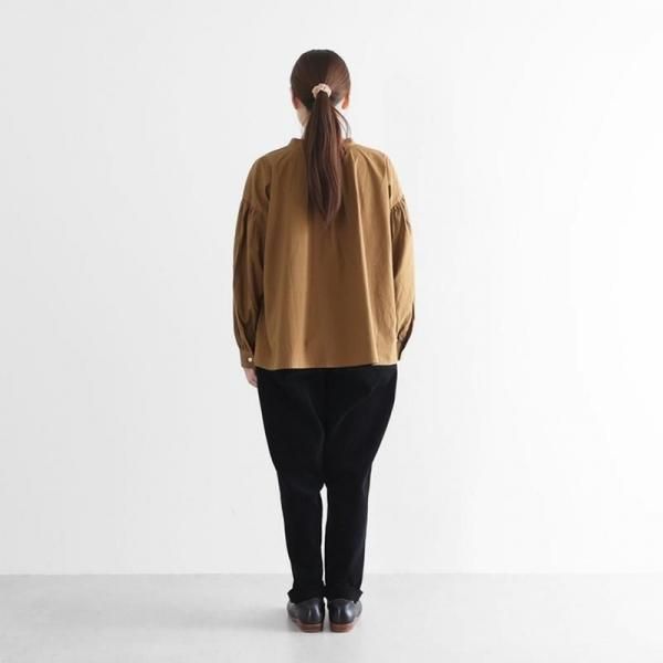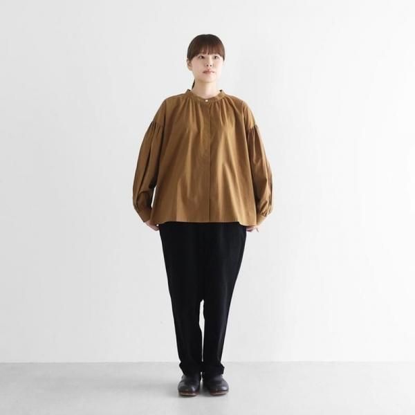 ウエストからもも周りにかけてはゆったりとしたサイズ感ではき心地がよく、裾にかけてテーパードがかかることですっきりとしたシルエットが生まれます。少しロールアップしてはいていただくのもおすすめです。ウエストはゴムと紐で調節が可能ですので、どなたでも快適にはいていただくことができます。